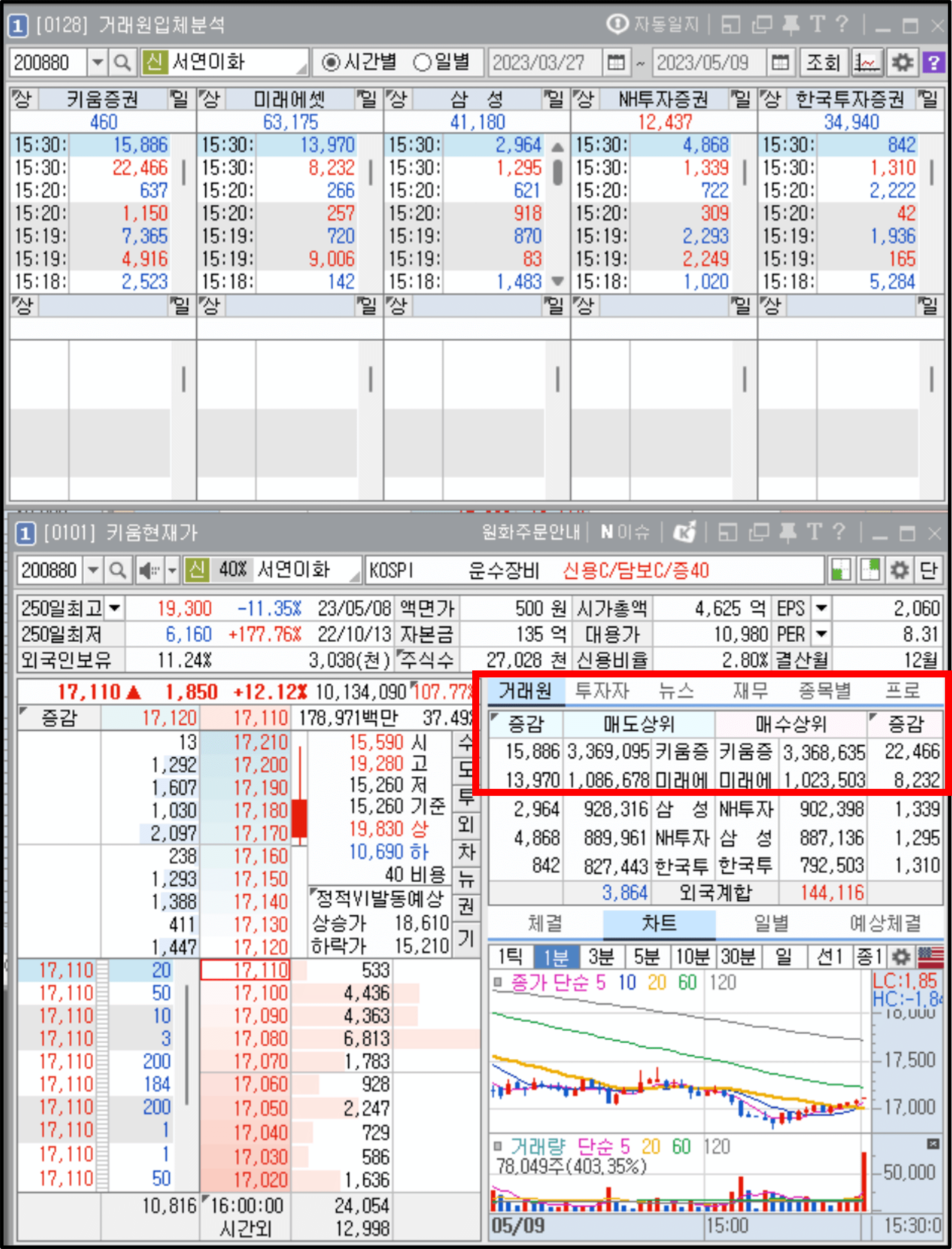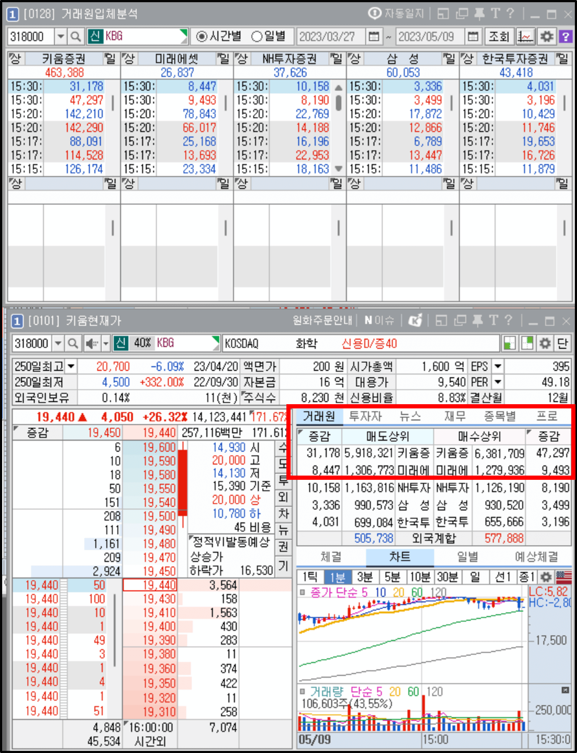 물론 종목마다 또 투자자 주체마다 이용하는 증권사의 창구가 다르기 때문에 각각 증권사의 창구 특징을 정의하기는 어렵지만 '키움증권과 미래에셋증권 거래원'은 유의미한 한 가지 특징을 가지고 있습니다.