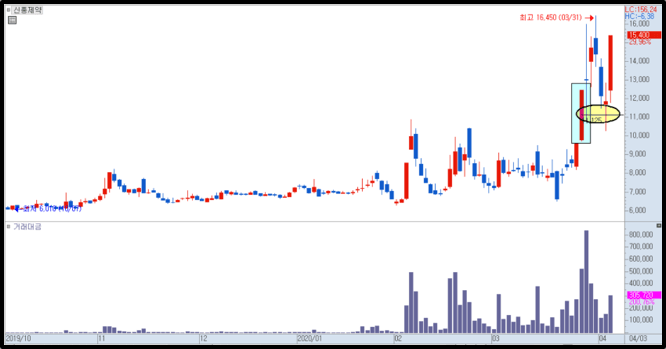 필자는 주가가 큰 폭으로 상승한 대시세 종목을 매매할 때도, 큰 거래대금을 동반한 장대양봉을 기준봉으로 체크하고 기준봉의 중심, 기준봉의 시가에서 분할 매수를 한 뒤, 기준봉의 시가를 손절 라인으로 잡고 매매한다면 충분히 좋은 결과를 만들 수 있다고 말씀드립니다.