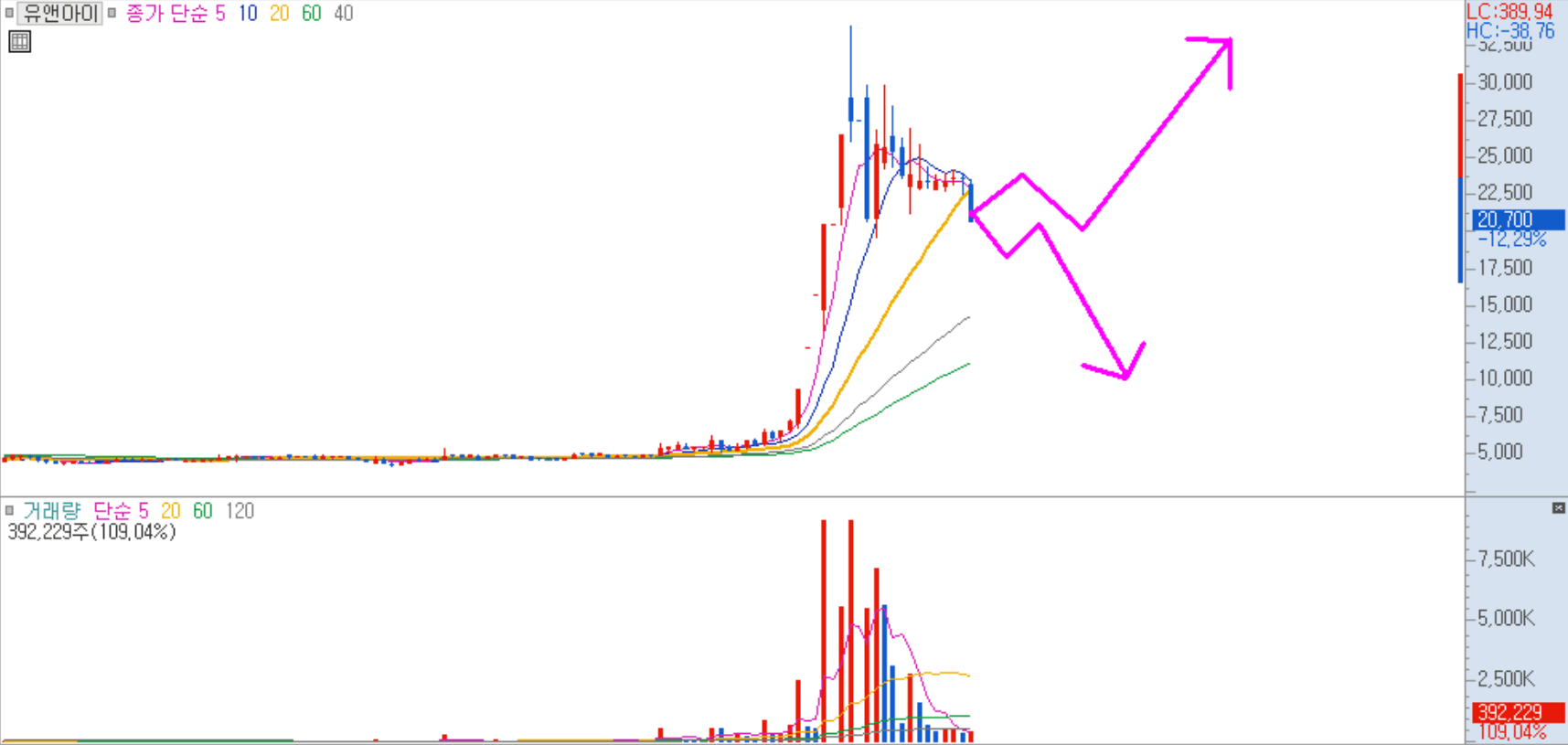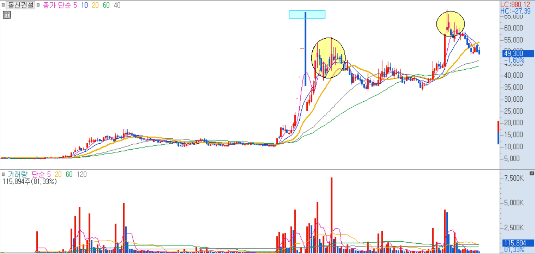 먼저 필자가 보여드리는 종목들은 이전에 큰 시세가 나왔던 종목이기 때문에 아마 주식시장에서 매매를 오랜 기간 동안 하셨던 분들이 아니더라도 한 번쯤은 보셨을 수 있던 종목입니다. 예시 이미지를 보여드리면서 설명드리겠습니다.
