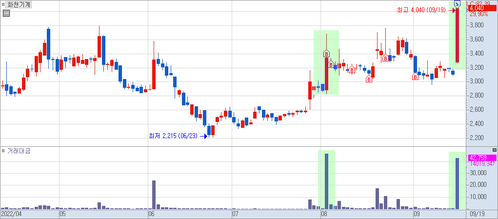 위 화천기계의 일봉 차트 하단에 있는 거래대금을 보시면 거래대금이 많이 발생한 날 약 400억 정도의 거래대금이 발생했다는 것을 확인하실 수 있습니다. 그런데 과연, 주식시장이 개장하는 9시부터 저런 큰 거래대금이 발생했을까요?