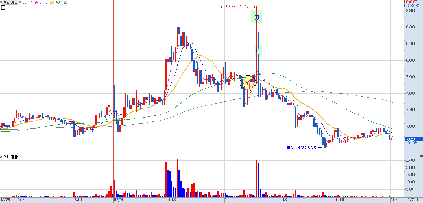 (관련된 뉴스를 계속 찾아봐서 기억하고 있다가 매매했던 종목.. 길게 볼건 아니라 짧게 매매 후 마무리)
