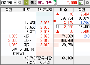 시간 외 단일가에서 상승하는 흐름이 나타나고 있어서 매수를 보류한 채 매도를 해야 하나 지켜보고 있는 상황입니다.