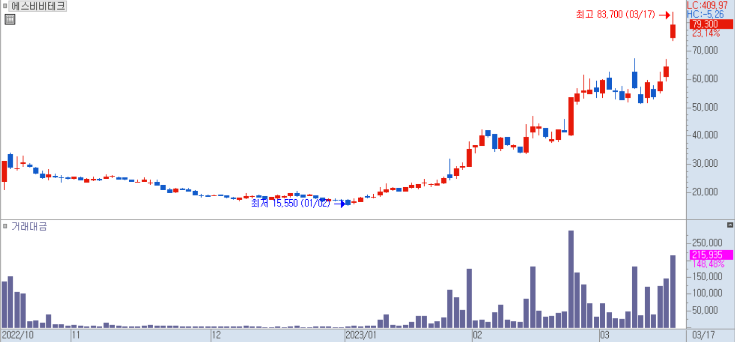 필자는 위와 같은 뉴스와 공시로 인해 투자자들이 관심을 가질만한 재료가 발생한 종목들을 빠르게 찾아내고 그 안에서 상승하는 종목들로 매매를 해야 테마주의 순환매를 따라갈 수 있다고 말씀드립니다. 그럼 이를 쉽게 이해하실 수 있도록 지금부터 세 가지 테마에 편입된 종목들의 차트를 보여드리겠습니다.
