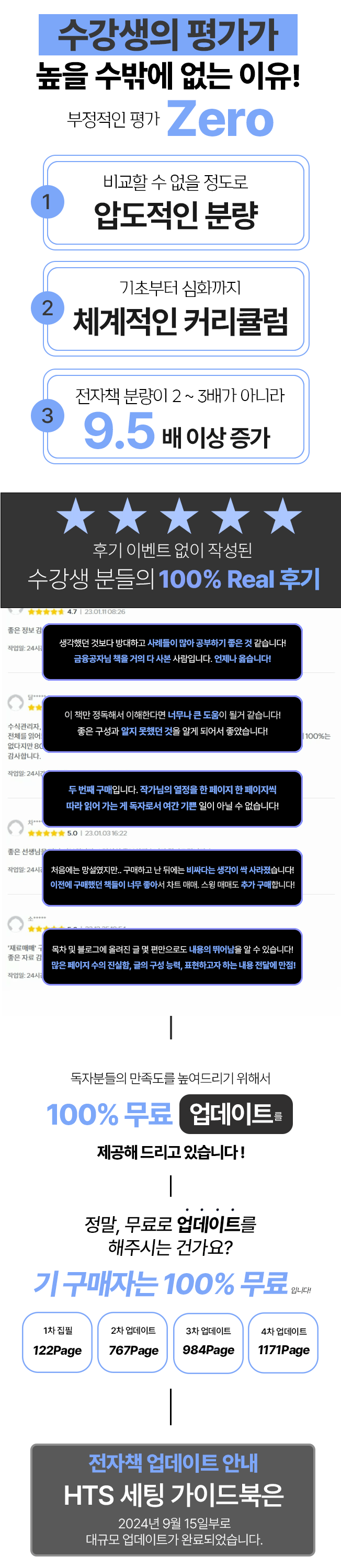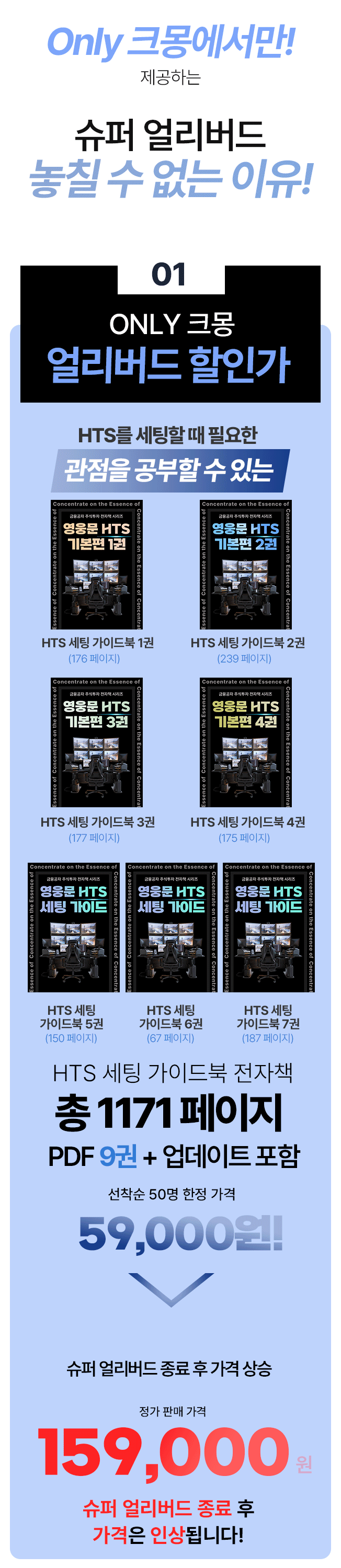 HTS 세팅 가이드북은 (20부 수량 기준) 순차적으로 가격이 인상될 예정이며 자세한 내용은 상세페이지 및 서비스 설명을 통해 확인해 주시기 바랍니다.