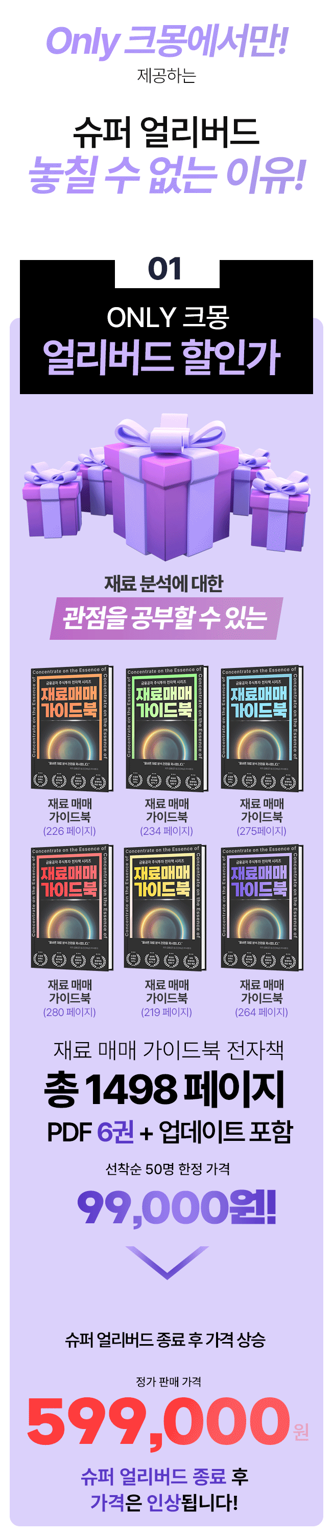 재료 매매 가이드북 전자책 맛보기 자료 제공 서비스는 2024년 3월 21일부로 종료됩니다.